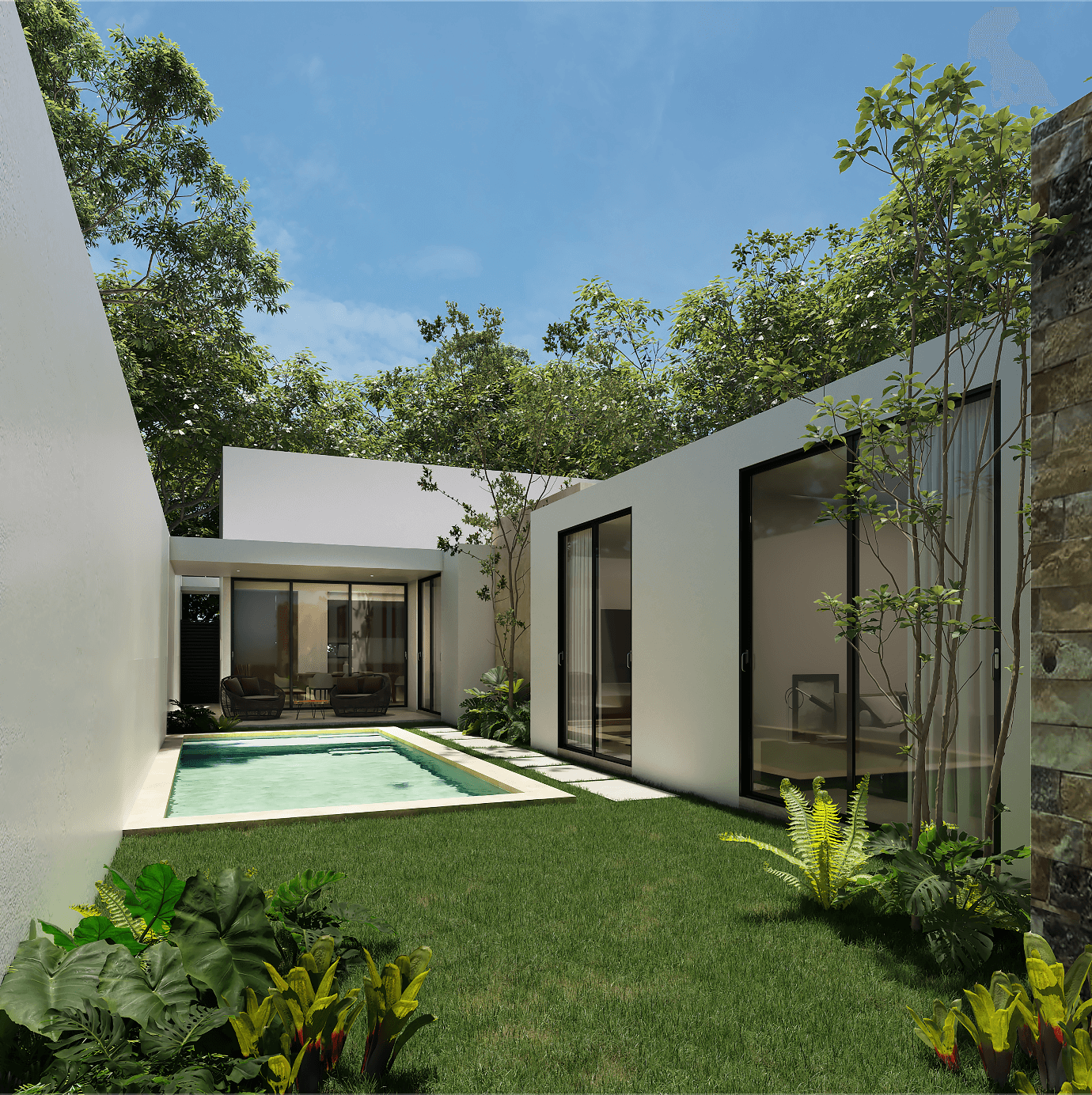 3 recámaras, 4 1/2 baños, terraza, alberca, cochera techada y área de servicio.